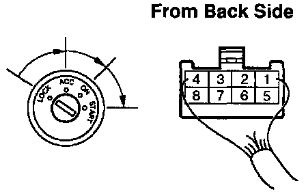 Connect the switch connector and inspect the connector on wire harness side from the back side, as shown.