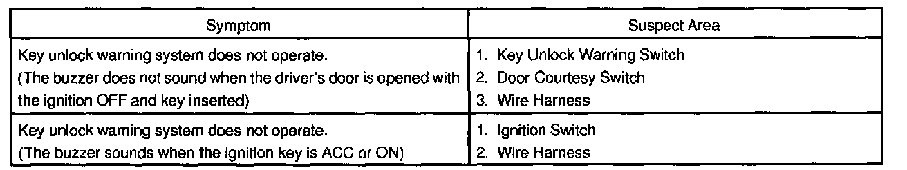 Key Unlock Warning Switch: