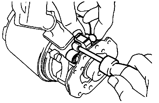 b. Using a screwdriver, hold the spring back and disconnect the brush from the brush holder. Disconnect the 4 brushes, and remove the brush holder.