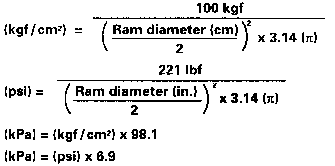 - Check the diameter of the hand press ram. Then calculate the gauge pressure of the press when 981 N (100 kgf, 221 lbf) of force is applied.
