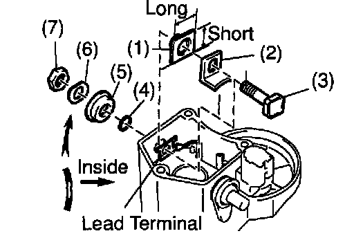 Remove the terminal nut, wave washer, terminal insulator (outside), O-ring, terminal bolt, contact plate and terminal insulator (inside).