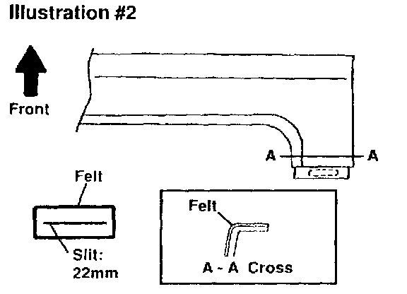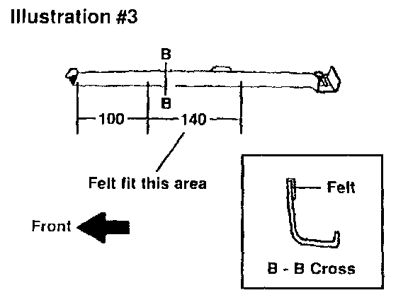 5. Apply felt (5 mm x 140 mm x 0.5 mm) to the Sliding Roof Garnish RH/LH as indicated in illustration # 3.