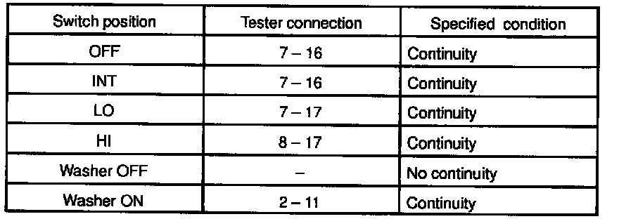 Wiper Switch: Testing and Inspection