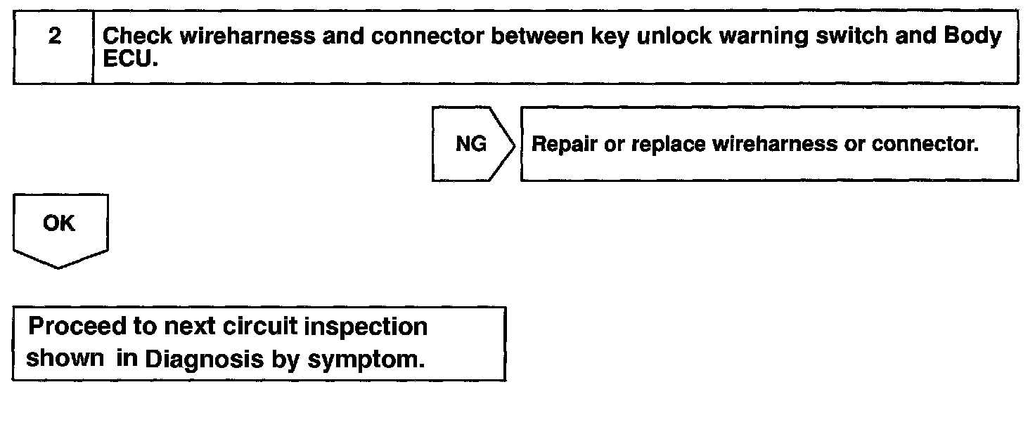 CIRCUIT DESCRIPTIONThe key unlock warning switch goes on when the ignition key is inserted in the key cylinder and goes off when the ignition key is removed.