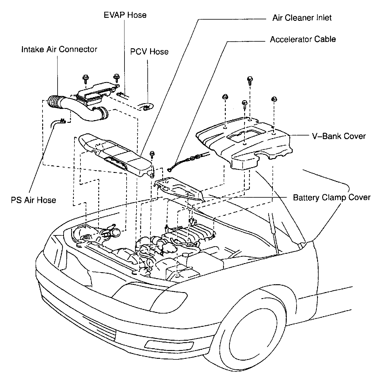 2. REMOVE BATTERY CLAMP COVER, AIR CLEANER INLET AND INTAKE AIR CONNECTOR