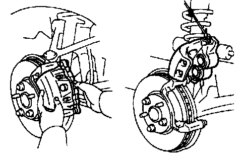 Remove the wheel and temporarily fasten the disc with the hub nuts.
