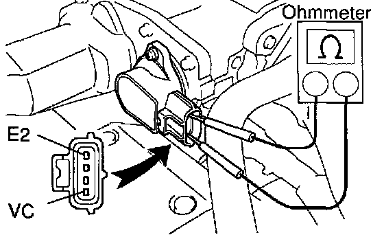 b. Using an ohmmeter, measure the resistance between terminals VC and E2.