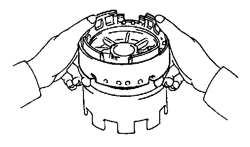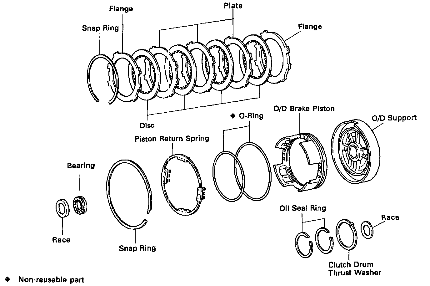 b. Being careful not to damage the O-rings, press in the brake piston into the O/D support with both hands.
