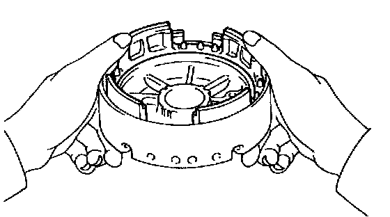 Check to see if the sliding surface of the disc, plate and flange are worn or burnt. If necessary, replace them.