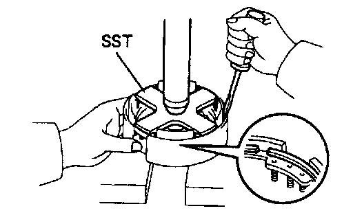 a. Place SST on the spring retainer, and compress the return spring with a shop press.