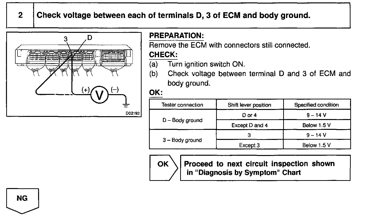 When the shift lever is in 3 position, the ECM prohibits shifting to 4th.