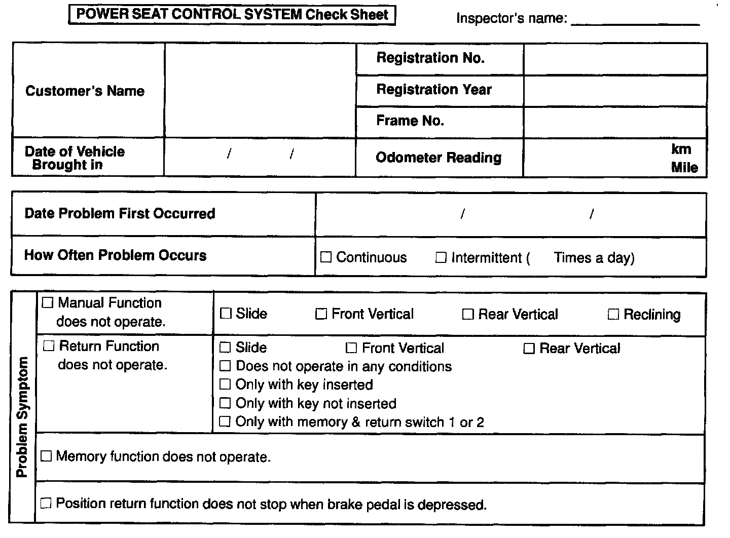 Customer Problem Analysis Check Sheet