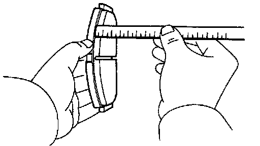Using a ruler, measure the pad lining thickness.