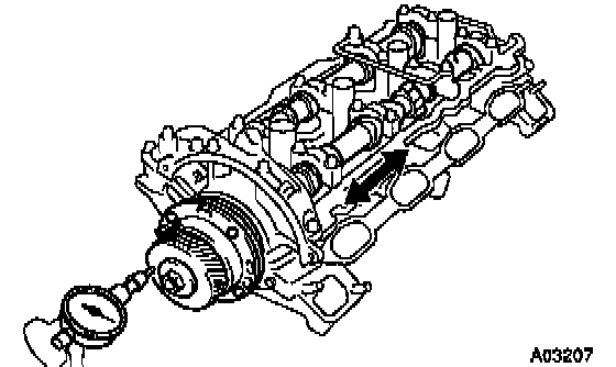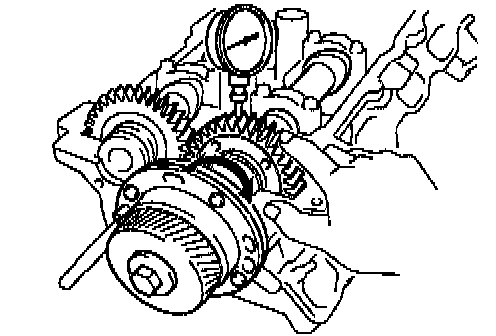 c. Using a dial indicator, measure the thrust clearance while moving the camshaft back and forth.