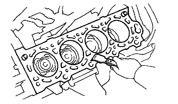 b. Using a gasket scraper, remove all the gasket material from the cylinder block surface.