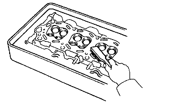 Using a soft brush and solvent, thoroughly clean the cylinder head.