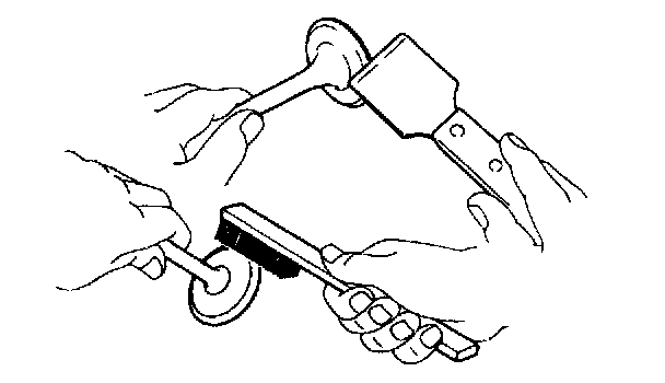 Using a valve guide bushing brush and solvent, clean all the guide bushings.