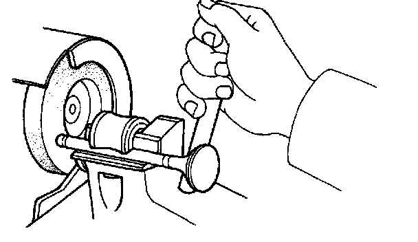 Apply a light coat of prussian blue (or white lead) to the valve face. Lightly press the valve against the seat. Do not rotate valve.