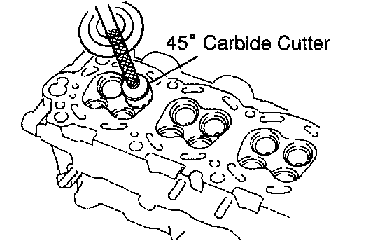 a. Using a 45° carbide cutter, resurface the valve seats. Remove only enough metal to clean the seats.