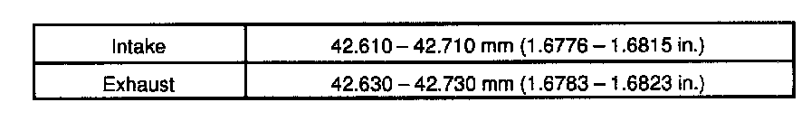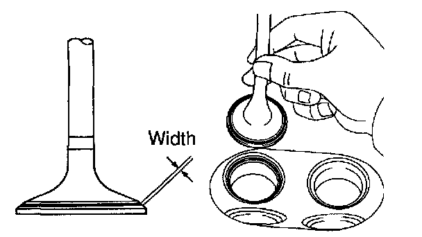 - Check that the seat contact is in the middle of the valve face with the following width: 1.0 - 1.4 mm (0.039 - 0.055 inch)