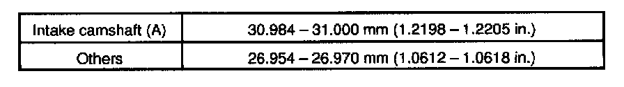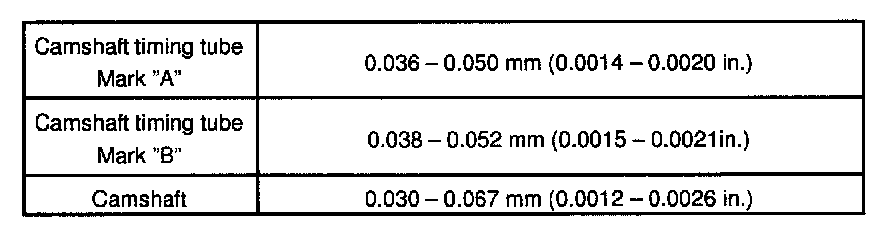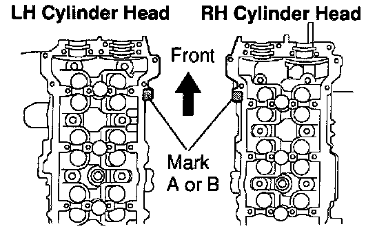 HINT: There are 2 size of the camshaft timing tube journal oil clearance, Marked "A" and "B" accordingly. The mark is stamped on the top of the cylinder heads.