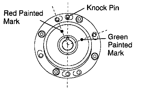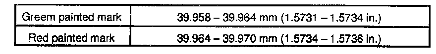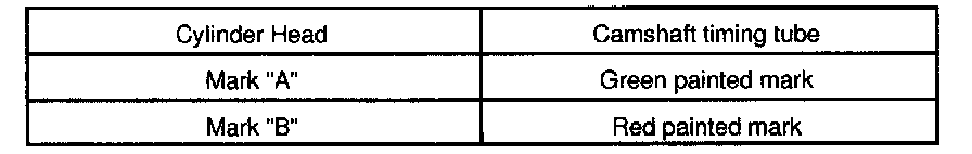 HINT: There are 2 sizes of the camshaft timing tube journal diameter, green and red painted mark accordingly. The mark is painted on the face of the camshaft timing tube.