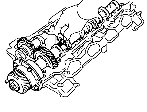 b. Install the camshafts without installing the exhaust cam sub-gear and front bearing cap.