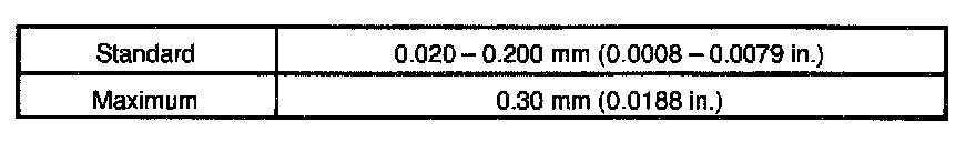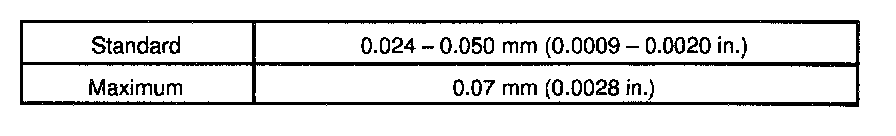 If the thrust clearance is greater than maximum, replace the camshaft. If necessary, replace the bearing caps and cylinder head as a set.