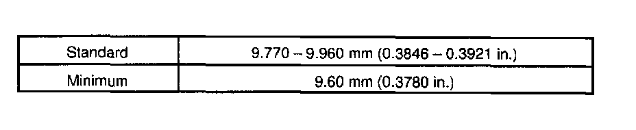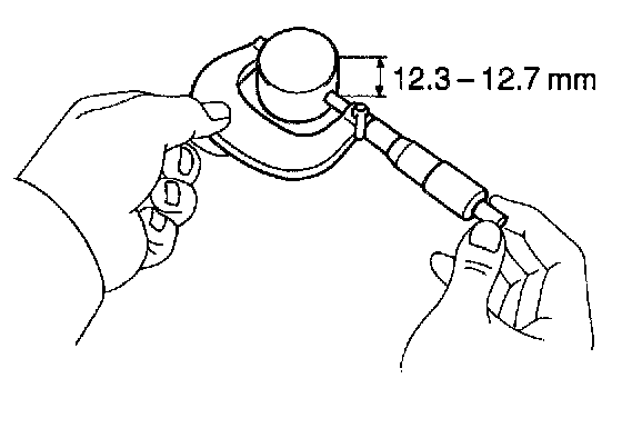 b. Using a micrometer, measure the lifter diameter at the valve lifter center line, 12.3 - 12.7 mm (0.484 - 0.500 inch) from the valve lifter head.