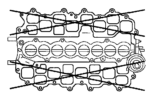Using a precision straight edge and feeler gauge, measure the surface contacting the lower intake manifold for warpage.