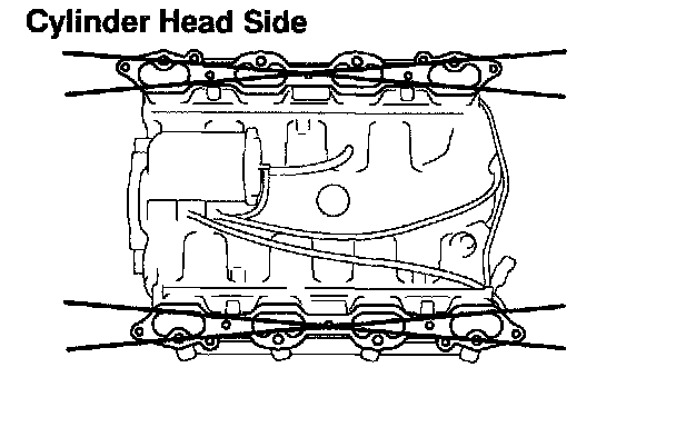 Using a precision straight edge and feeler gauge, measure the surfaces contacting the cylinder block and the manifolds for warpage.