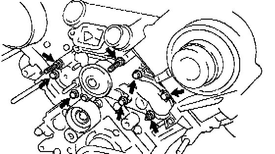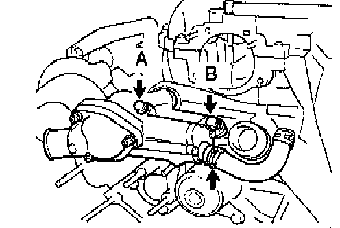 b. Using a screwdriver, remove the water pump by prying the portions between the water pump and cylinder block.