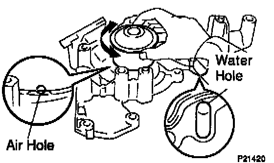 a. Visually check the air hole and water hole for coolant leakage.