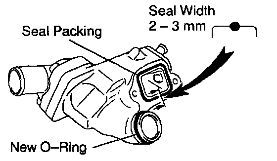 b. Apply seal packing to the water pump as shown in the illustration.
