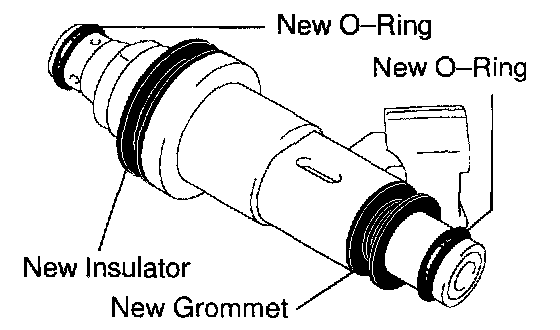 b. Apply a light coat of gasoline to 2 new O-rings and install them to each injector.