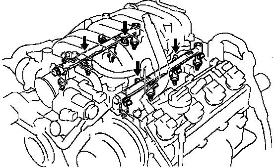 a. Remove the 4 nuts holding the delivery pipe to the intake manifold.
