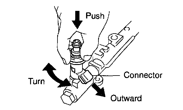 c. While turning the injector clockwise and counterclockwise, push it to the delivery pipes. Install the 8 injectors