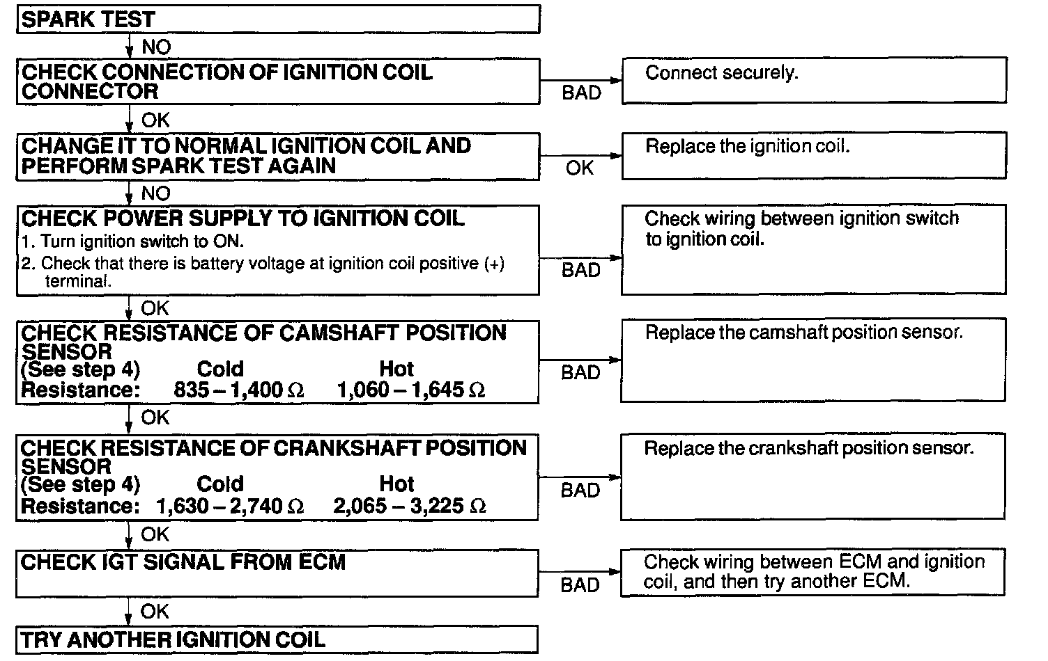 If the spark done not occur, do the test as shown: