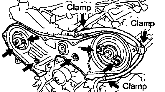 a. Disconnect the 3 engine wire clamps from the timing belt cover.