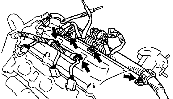 q. Disconnect the engine wire clamp from the emission control valve set.