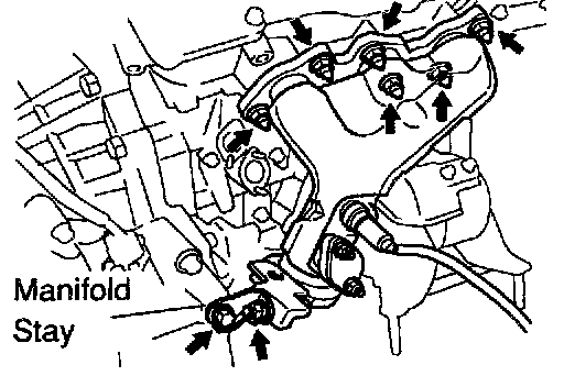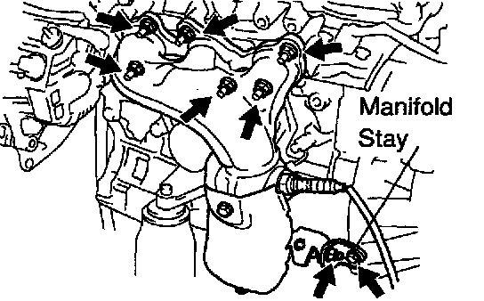 b. Remove the bolt, nut and exhaust manifold stay.