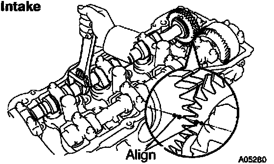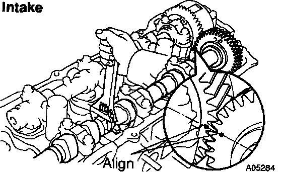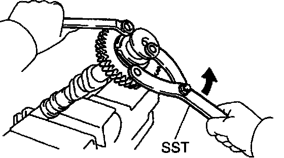 HINT: When removing the camshaft, mark certain that the torsional spring force of the sub gear has been eliminated by the above operation.