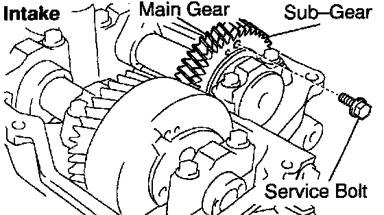 2. Secure the exhaust camshaft sub-gear to the main gear with a service bolt.