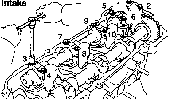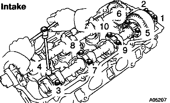 4. Remove the 5 bearing caps and intake camshaft.