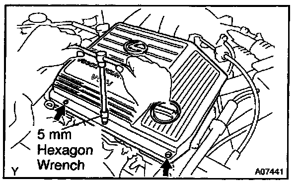 a. Using 5 mm hexagon wrench, install the V-bank cover with the 3 cap nuts.