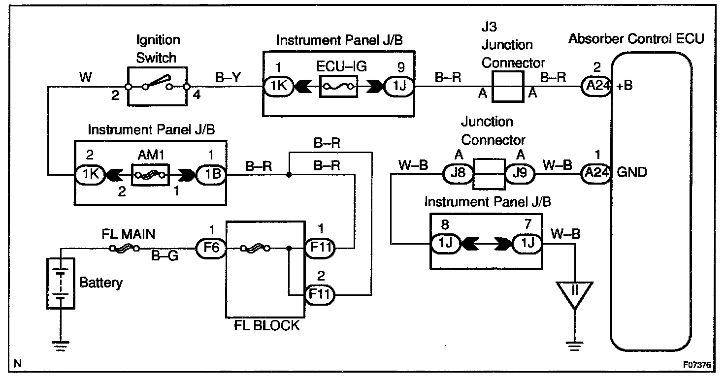 This is the power source for the absorber control ECU, hence the absorber control actuator.