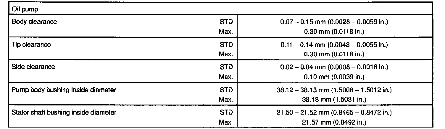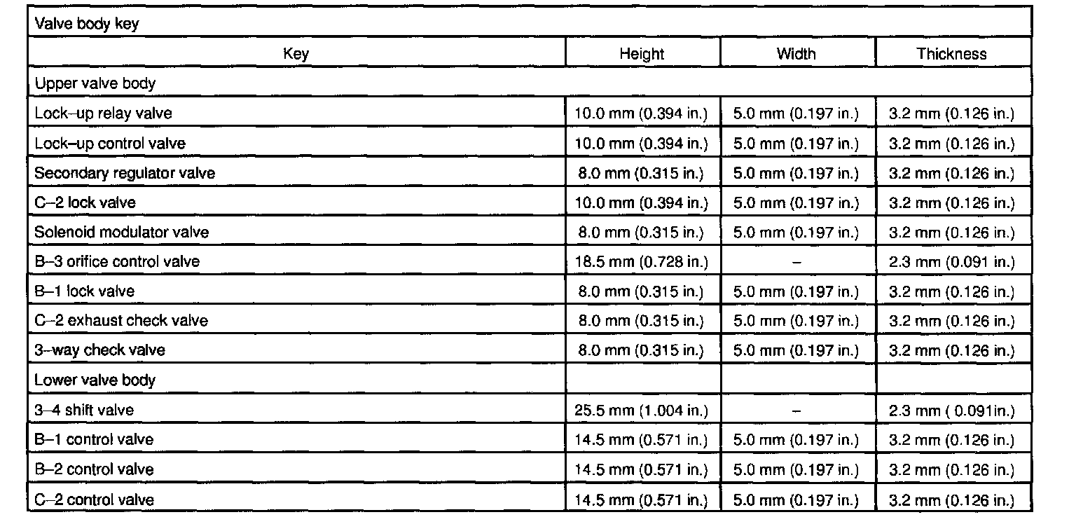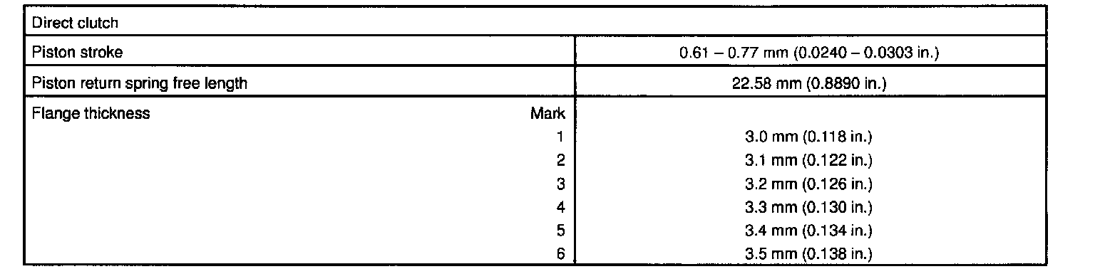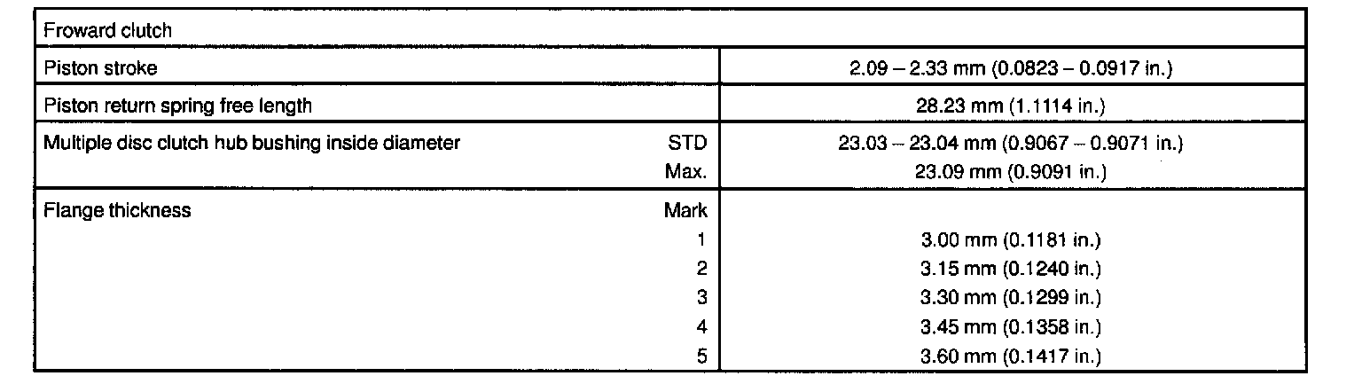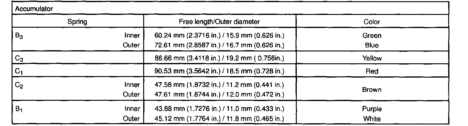 AUTOMATIC TRANSAXLE SERVICE DATA SPECIFICATIONS CHARTS