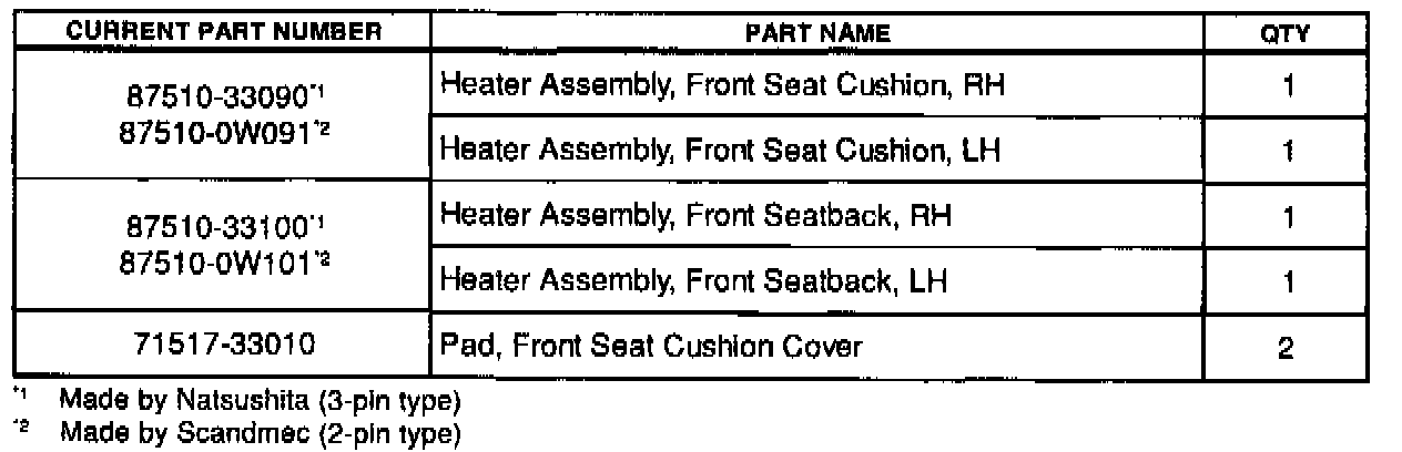 This is to inform you of the seat heater replacement procedure. A change has been made to allow separate installation of the seat heater element.