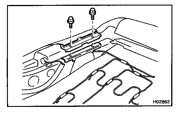 d. Install the seat cover retainer and hook to the seatback assembly with the 2 bolts.