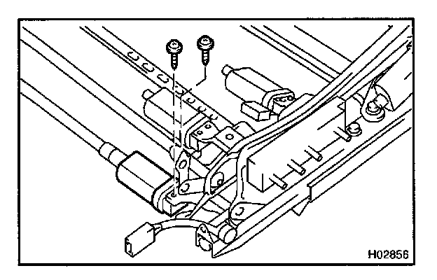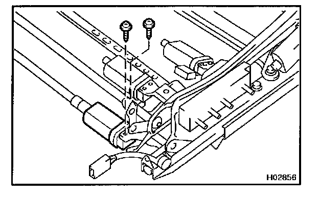 Connect the seat adjuster drive cable, then install the slide motor with the 2 screws.